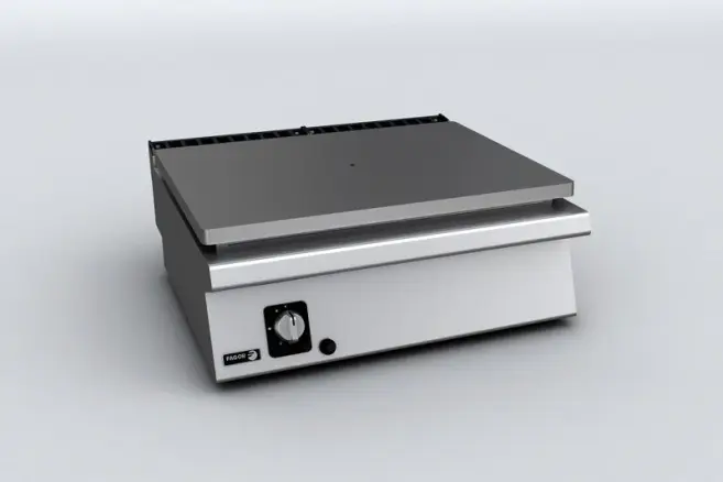 Gasspisen i serien Kore 700 från Fagor med solid platta erbjuder olika zoner för olika temperaturer på samma platta med en singel high-power brännare.