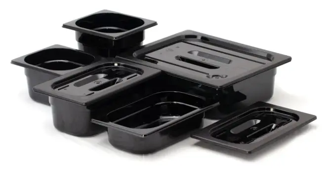 Lock för GN 1/4 kantiner i svart polykarbonat är ett användbart tillbehör för att skydda mat som förvaras i mångsidiga GN-behållare med standardmått.