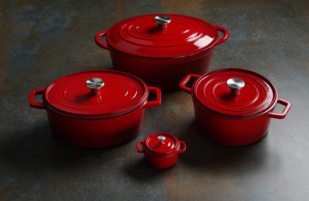 Gjutjärnsgryta emaljerad, HENDI, 3,7L, Röd, 317x240x(H)105mm