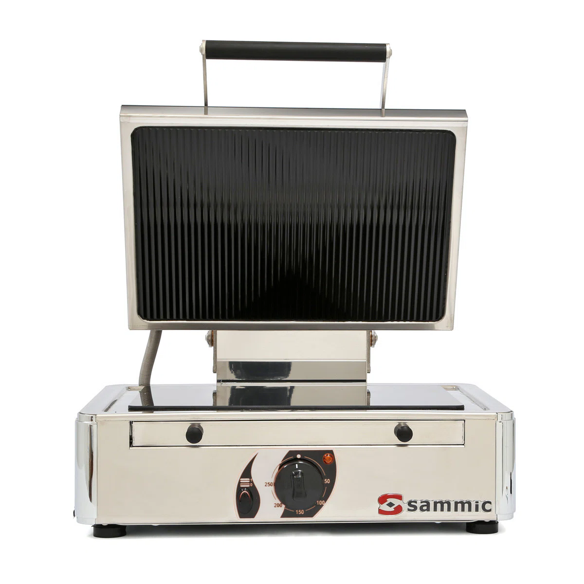 Snabb och smidig glaskeramisk klämgrill. Snabb uppvärmning och mycket lätt rengöring.