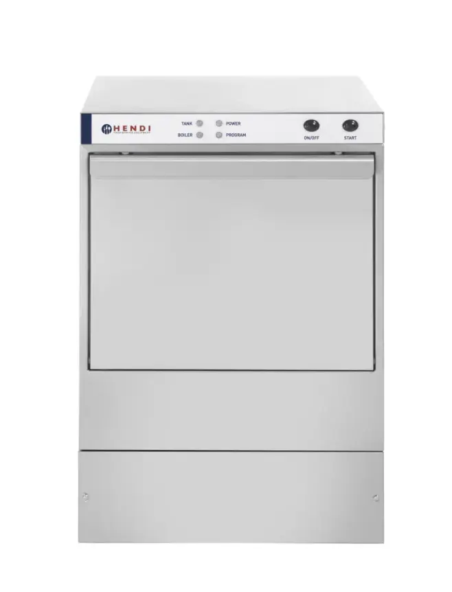 Professional dishwashers that are easy to use, maintain, clean and to service. Water consumption of only 2-2,5 liter per cycle (depending on water pressure). Housing completely made of stainless steel, fitted with adjustable feet. Fitted with a boiler and a heating element in the water tank. Washing water temperature: 62°C, rinse water temperature: 85°C. Perfect for washing plates, cutlery, glasses, mugs, trays, etc.