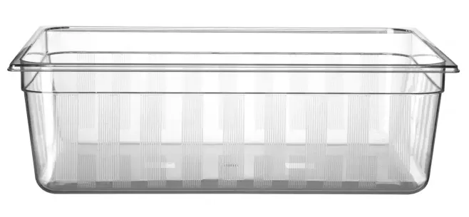 Högkvalitativ professionell kantin GN 2/1-200 mm  i transparent polykarbonat. Suger inte åt sig doft eller smak.