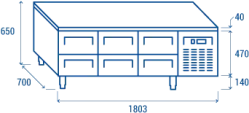 Grillkylbänk med 6 lådor – 1800x700x650 mm