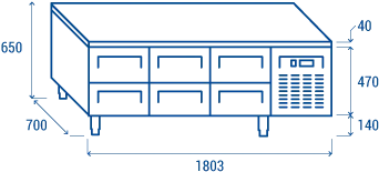 Utformad för att skapa en bekväm och effektiv arbetsstation, som gör det möjligt att förvara färska livsmedel i kylzonen längst ned och tillaga dem med fristående utrustning högst upp. Modellen UGN 3160 är den perfekta kombinationen av effektivitet och modularitet i ett professionellt kök med 650 mm höjd, 6 utdragbara lådor GN1/1 lämpliga för kantiner med 100 mm djup, digital termostat och höjdjusterbara fötter (från 120 mm till 180 mm).