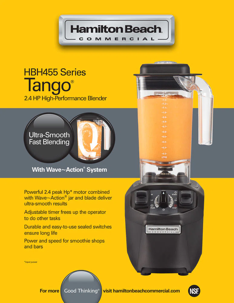 Hamilton Beach är världsledande kvalitetsmärke inom blenders och mixers för profesionella. Kraftfull 2,4 peak HP motor kombinerad med Wave~Action®. Behållare och blad i rostfritt stål ger ultra-smooth resultat med både färska och frusna råvaror. Optimerad prestanda. Bred, fyrkantig behållare rymmer större ingridienser vilket minskar förberelsetiden. Högpresterande rostfritt stålblad skär snabbt genom is. Levereras med 1 botten, 1 kanna BPA fri och rymmer 1,4 liter, lock och blad i rostfritt stål.