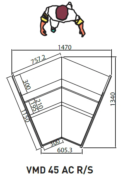 Hörndisk 45° Innerhörn Madrid, 1470x1150mm, med kylförvaring under
