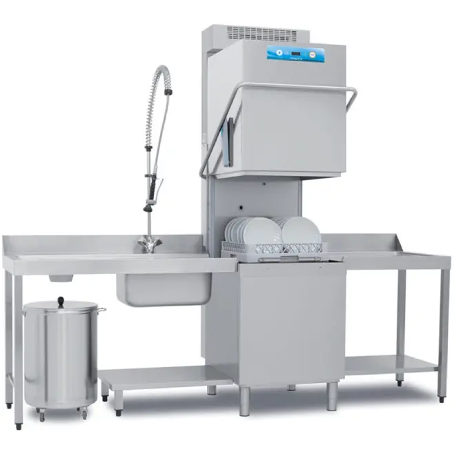 Huvdiskmaskin med värmeåtervinning. Producerad av italienska Elettrobar, ett av Europas ledande varumärken. Elettrobar är en del av ITW, som också står bakom Hobart, Berkel och Gamko. Inkl. VÄRMEÅTERVINNING, vilket sparar mycket pengar på elförbrukningen genom att återvinna värmen för att värma upp kallvattnet från kranen. Den här diskmaskinen har en isolerad huva i två lager och ett filtreringssystem i världsklass.