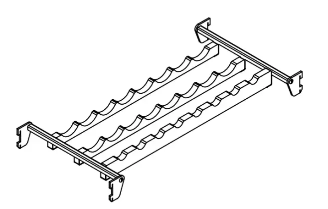 Hylla i rostfritt för liggande exponering av 8 vinflaskor.