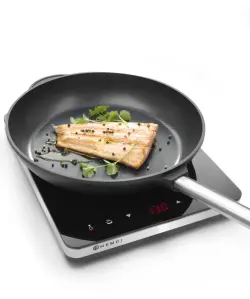 Very slim housing (32mm) with stainless steel frame. Ceramic glass surface. Touch-sensitive control. Suitable for pots up to 260 mm bottom size.