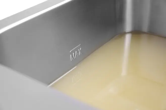 Induktionsfritös med exakt temperaturreglering – tack vare induktion bibehålls den inställda oljetemperaturen.