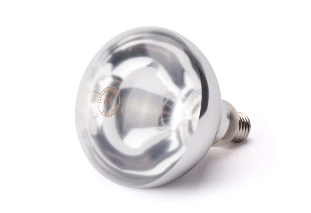 Infraröd värmelampa från Hendi i härdat, stänksäkert glas med vit sken (E27).