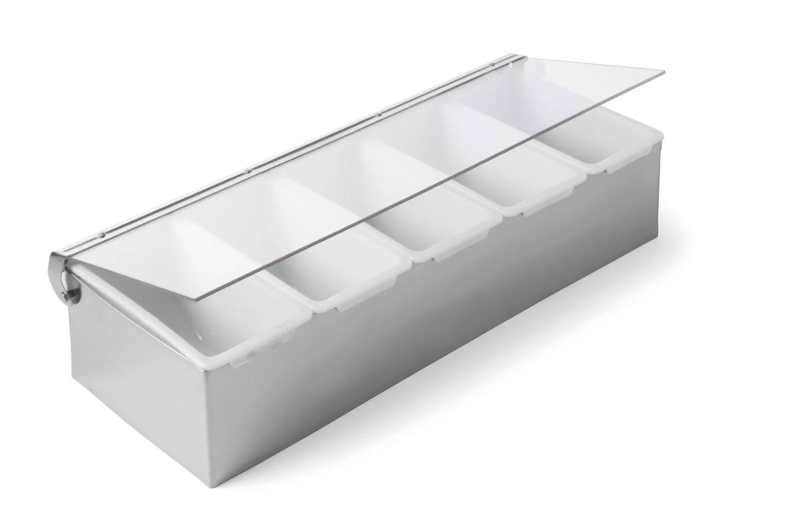 Ingrediensbox i rostfritt stål och 5 st behållare i plast.