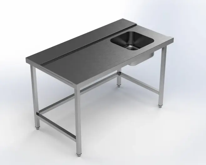 Alla våra rostfria inmatningsbänkar är godkända för livsmedel och tillverkas i ståltyp AISI304 som är den vanligaste ståltyp till livsmedelshantering.