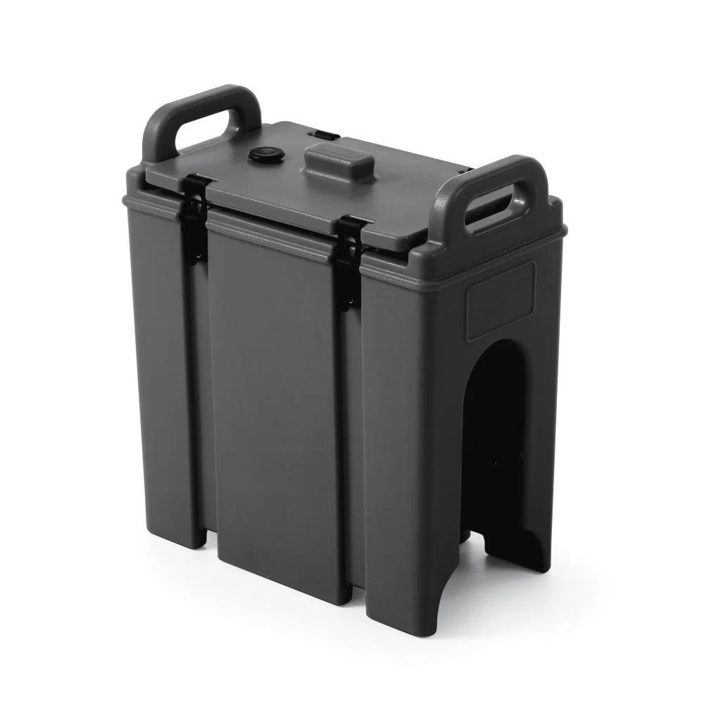 Ideal for storage, transport and serving of hot and cold drinks. Robust LDPE polyethylene housing. Good polyurethane foam insulation. 4 heavy duty clamps, 25 mm wide, at either side of the jug, for easy and quick opening and closing. Comfortable transport grips. Tap distance from the floor: 95 mm. Recessed tap – protection against transport damage. Delivered with stickers for quick identification of drinks. Vent for easier lid opening. Shock and impact resistant. Rounded chamber with grooves leading to the tap.