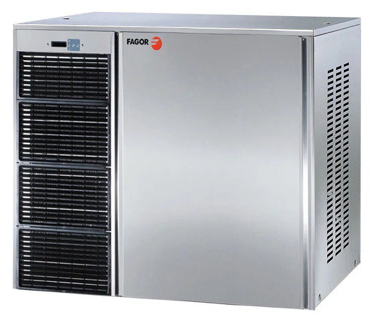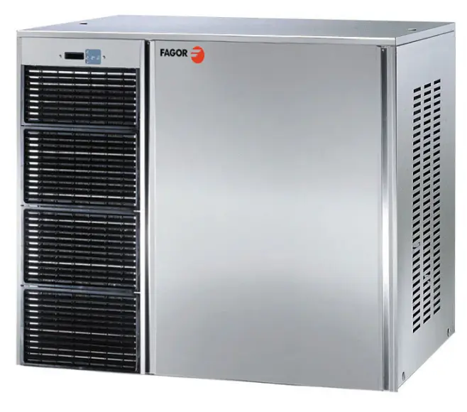 Ismaskin från spanska Fagor i toppkvalité. Robust med hölje i rostfritt stål som lätt går att ta av för att nå alla komponenter, tekniskt avancerad så att den tål temperaturer i rummet upp till 43 C grader, effektiv energihantering, ergonomisk och är byggd för att användas kontinuerligt varje dag. Mått: 775x625x805 mm. R404a coolant. 3¤4 vatteninlopp.