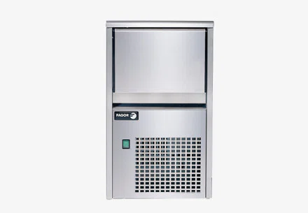 Ismaskin i hög kvalité från spanska Fagor, modell: FIM-200L. Tillverkar 14 grams kristallklara och kompakta iskuber och kan producera 22 kg/dag. Tanken tar 6 kg iskuber. Denna ismaskin tillverkar kristallklara och kompakta iskuber som håller länge!