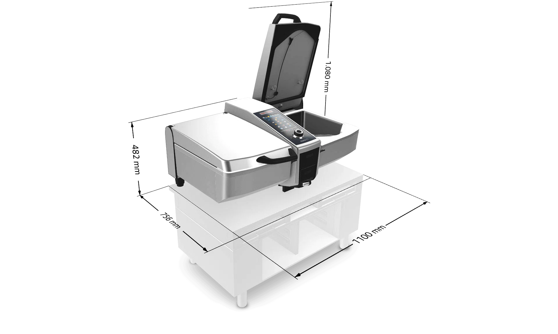 Fritös, spis, kastrull, stekpanna, tryckkokare, Bain-Marie, stekbord och kokkärl i ett och samma matlagningssystem.