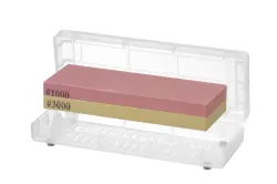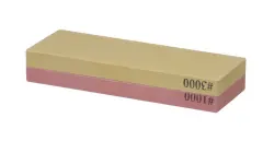 Den dubbelsidiga stenen består av 2 plattor med 2 olika kornstorlekar: 220/1000 (820667). 1000/3000 (820674). Stenkorn – med dess syfte: 220: knivkantslipning och regenerering. 1000: grundläggande knivslipning. 3000: polering och efterbehandling av bladkant. Blöt stenen med vatten före användning. Setet innehåller en plastlåda för säker förvaring.