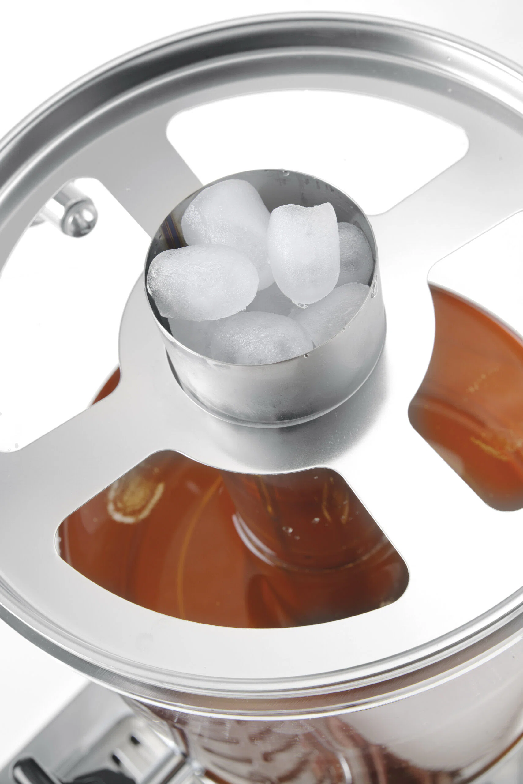 Snygg och stilren juicedispenser om 2x8L med klar polycarbonatbehållare. Utrustad med non-driptapp, iscylinder för kylning av drycken samt avtagbar spillbricka för snabb och smidig rengöring.