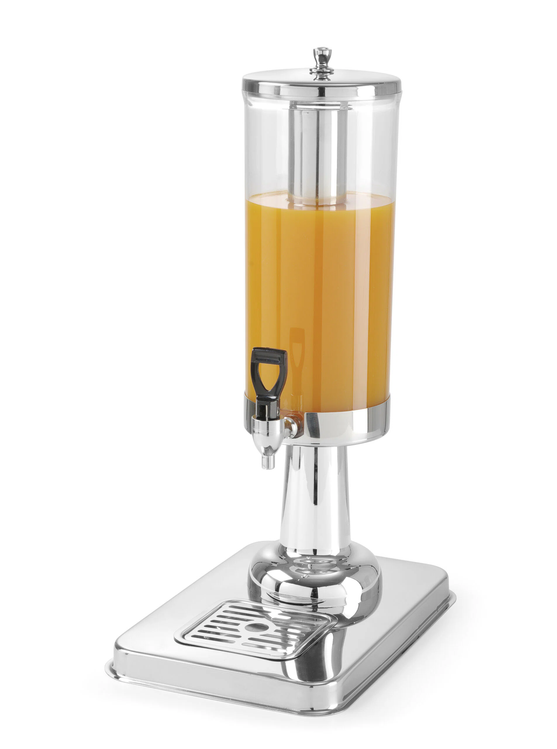 Snygg och stilren juicedispenser om 3L med klar polycarbonatbehållare. Utrustad med nondriptapp, iscylinder för kylning av drycken samt avtagbar spillbricka för snabb och smidig rengöring.