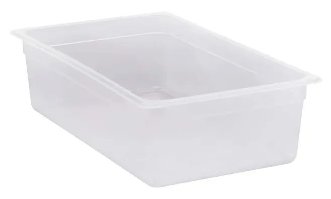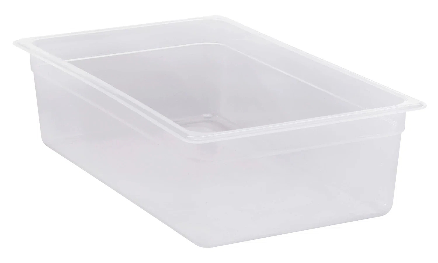 Genomskinlig och BPA-fri plastkantin från Cambro. Ett kostnadseffektivt och pålitligt val för professionella kök. Plastkantinen är tillverkad i slitstark, genomskinlig polypropen.
