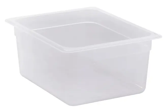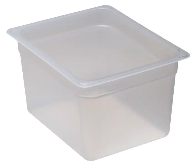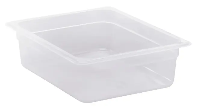Genomskinlig och BPA-fri plastkantin från Cambro. Ett kostnadseffektivt och pålitligt val för professionella kök. Plastkantinen är tillverkad i slitstark, genomskinlig polypropen.
