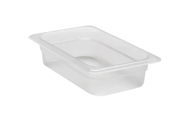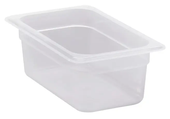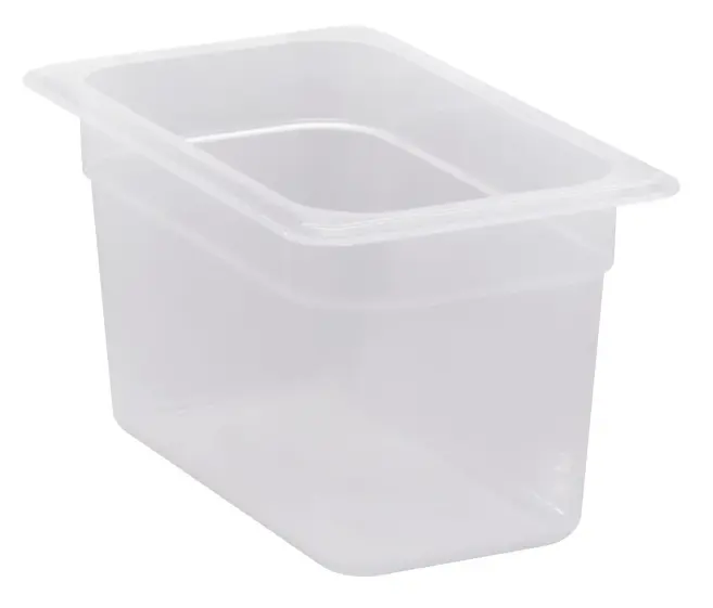Genomskinlig och BPA-fri plastkantin från Cambro. Ett kostnadseffektivt och pålitligt val för professionella kök. Plastkantinen är tillverkad i slitstark, genomskinlig polypropen.
