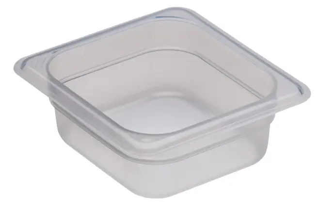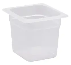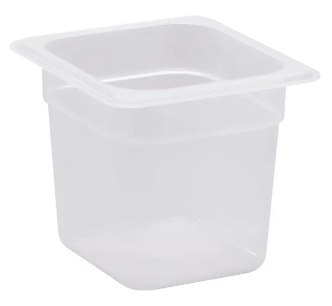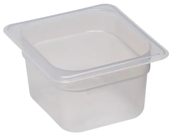 Genomskinlig och BPA-fri plastkantin från Cambro. Ett kostnadseffektivt och pålitligt val för professionella kök. Plastkantinen är tillverkad i slitstark, genomskinlig polypropen.