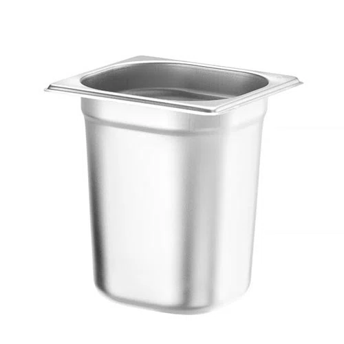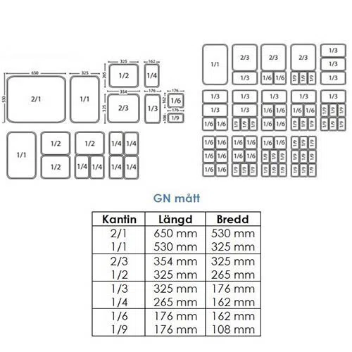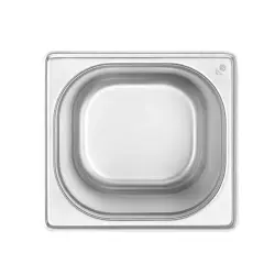 GN kantiner i rostfritt - 1/6. Finns med flera olika djup! Släta GN kantiner 1/6 utan handtag i rostfritt 18/8 stål - mått 176x162. Kantinerna är tillverkade enligt Europeisk standard SS-EN-631-1 och passar därför till alla storkök