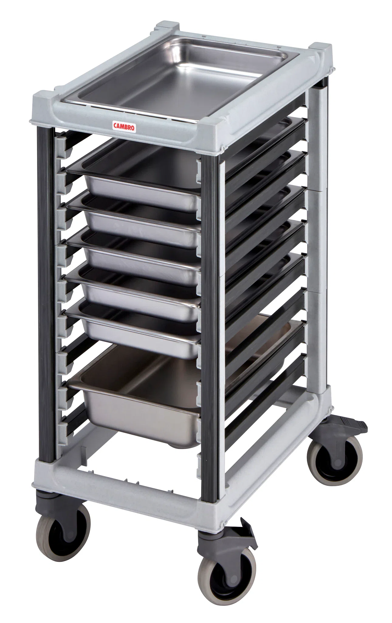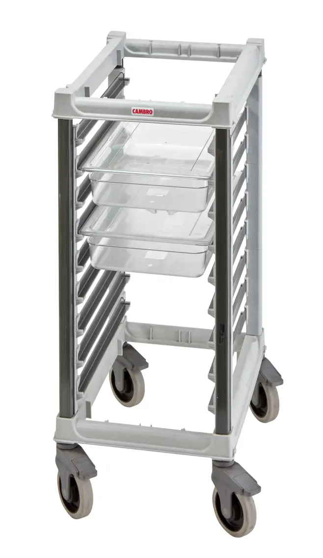 Kantinvagn GN 1/1 Cambro Camshelving Denna kantinvagn från Cambro är utvecklad för att möta de höga kraven i moderna restaurangkök. Till skillnad från traditionella vagnar i aluminium eller stål är den tillverkad i ett innovativt kompositmaterial som är både starkare än stål och helt fritt från problem som rost, korrosion och svaga svetsfogar. Resultatet är en slitstark vagn som fungerar lika bra i kök som i serveringsmiljöer – och dessutom är tystare vid användning.