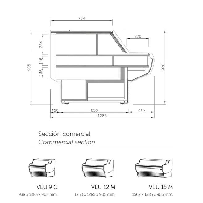 Kombination av olika moduler för kylsystem: ventilerad, halvstatisk och statisk. Moduler med eller utan kylförvaring. Vinklar och diskar för att anpassa linjen till ett utrymme.