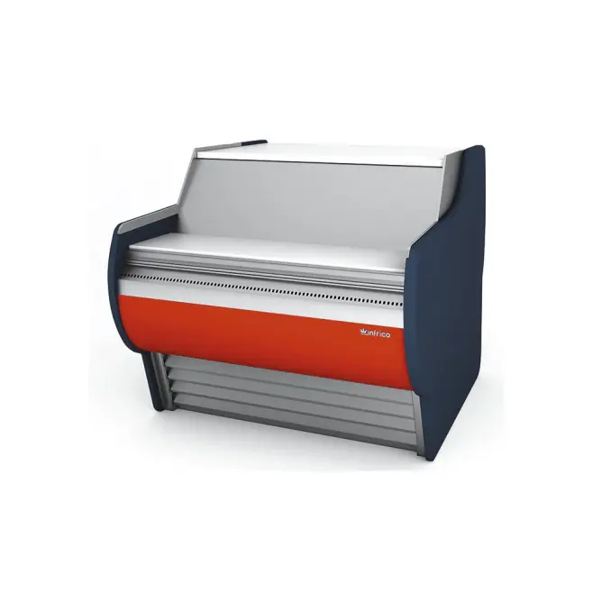 ✓ Kombination av olika moduler för kylsystem: ventilerade, halvstatiska och statiska. Moduler med eller utan kyld förvaring. Hörn- och kassadiskar för att anpassa linjen till ett specifikt utrymme.