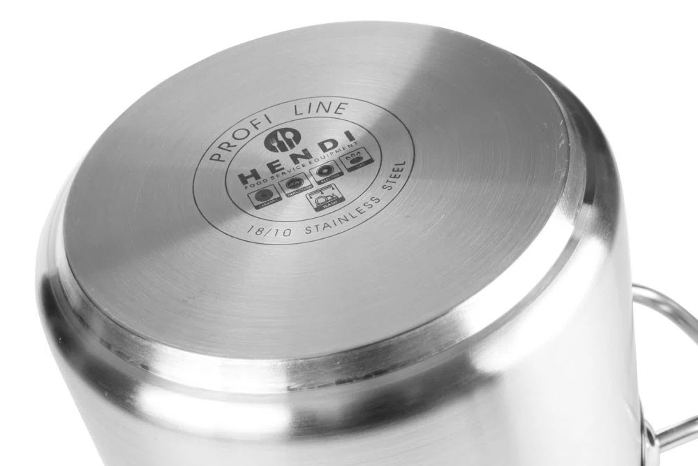 Sandwich botten av rostfritt med alu-kärna för bra och jämn värmefördelning.