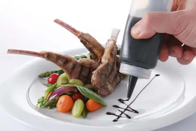 Plastflaska/dispenser med pip som gör doseringen enkel och ett lock som håller såsen fräsch och hygienisk. Tål diskmaskin