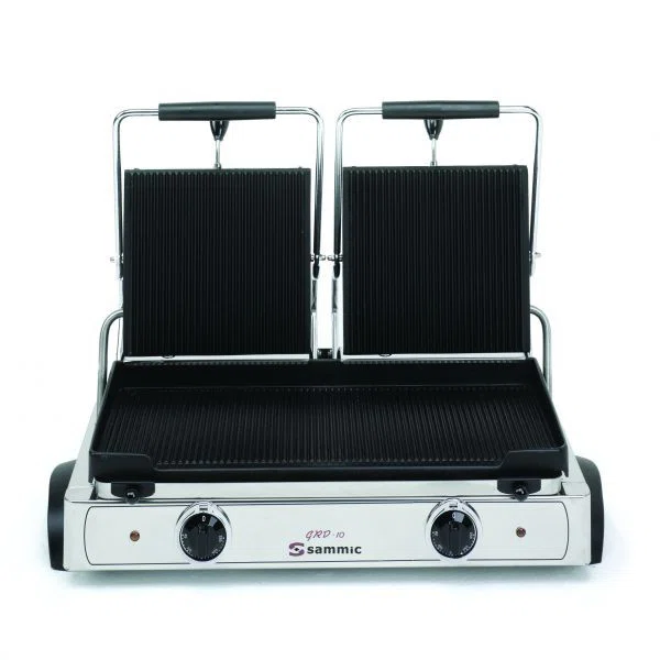 Konstruktion i rostfritt stål med grillyta i gjutjärn.