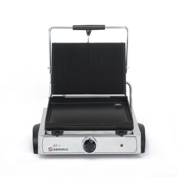 Konstruktion i rostfritt stål med grillyta i gjutjärn.