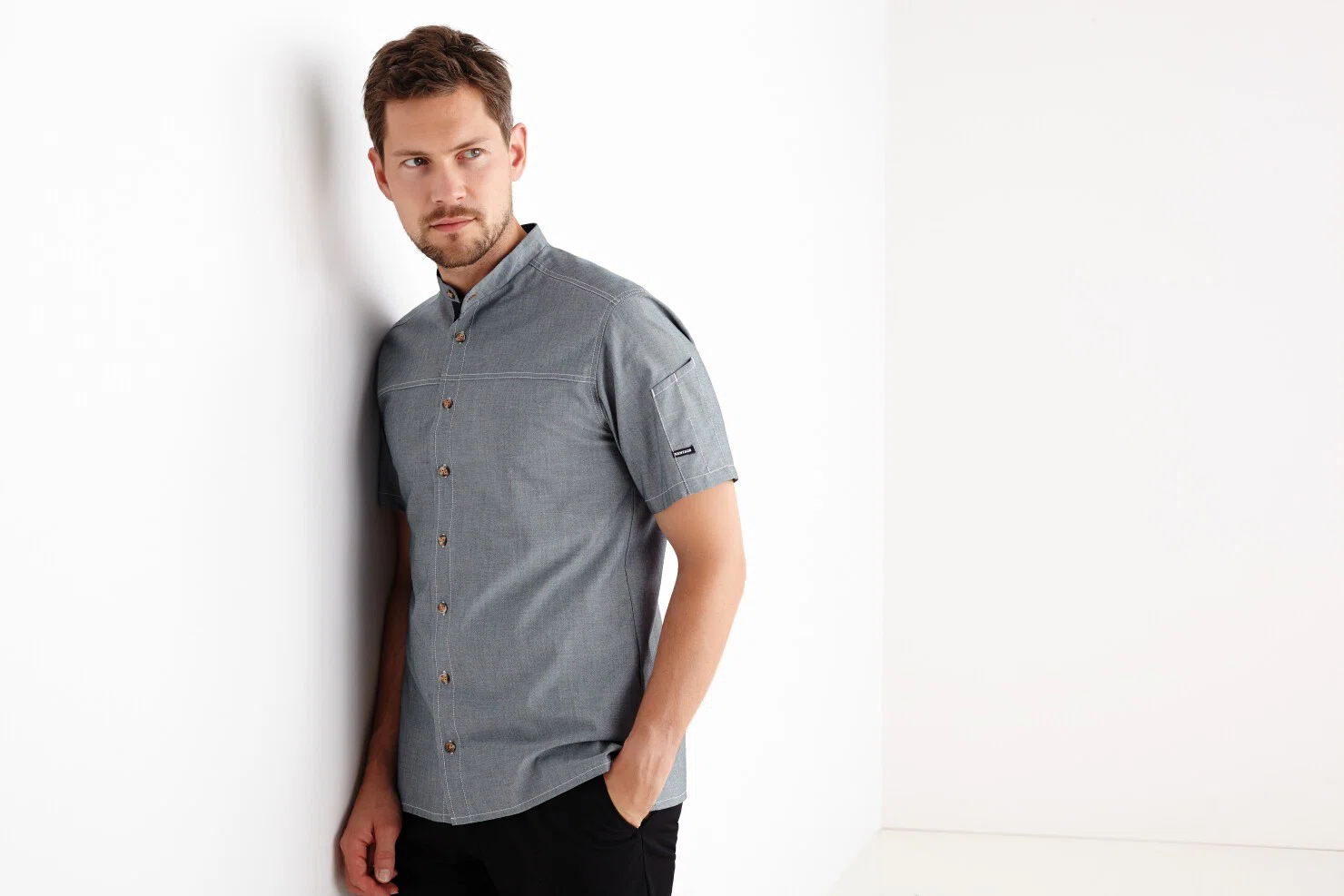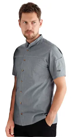 Kock-/serviceskjorta denim kort ärm – Chambray grå – Kentaur