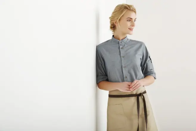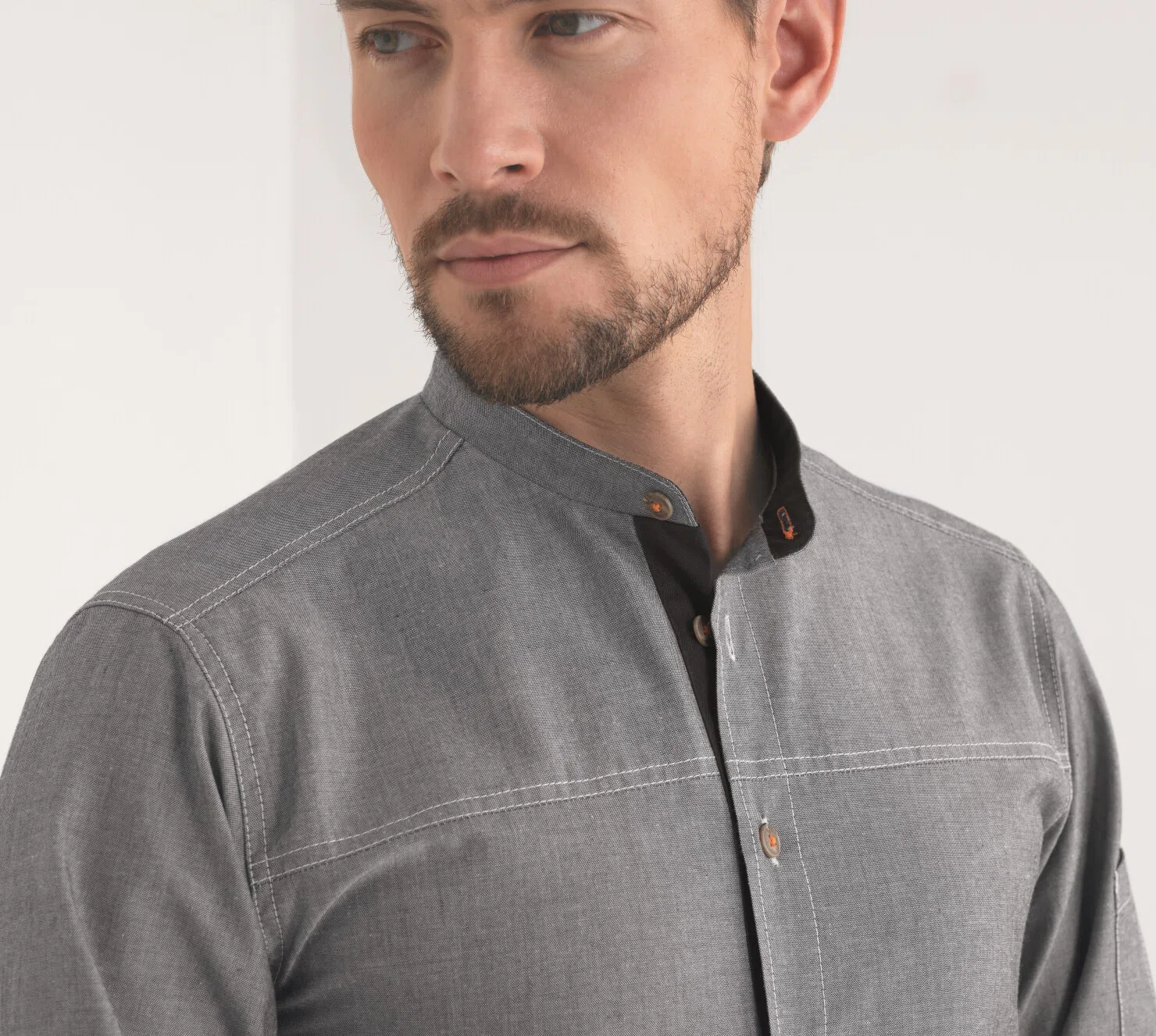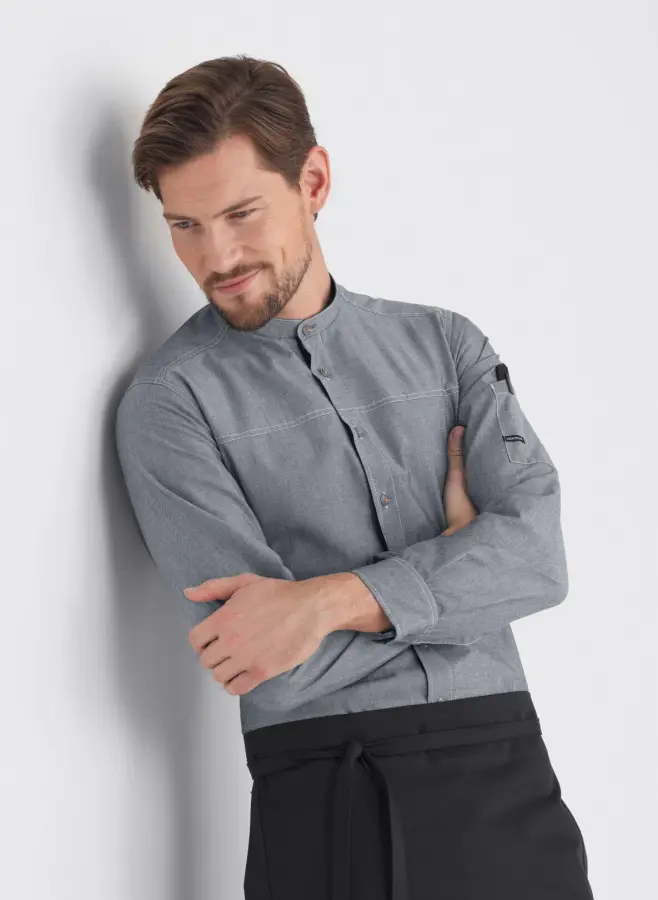 Kock-/serviceskjorta denim lång ärm – Chambray grå – Kentaur