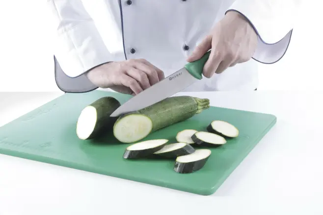 Polypropylenhandtag enligt HACCP-riktlinjer. Kan diskas i diskmaskin. HACCP färgkodning. Polypropylen. Rostfritt stål.