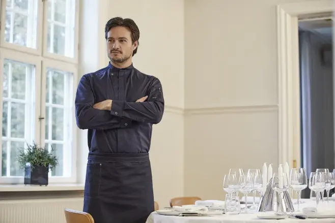 - En blandning av klassisk kockjacka och modern kockskjorta