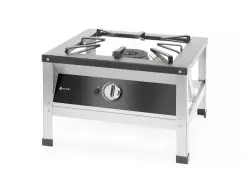 XL-modell, fungerar på propan/butangas. Omvandlarset ingår för att göra den även lämplig för naturgas. Försedd med ett extra stort emaljerat pannstöd. Ram helt i rostfritt stål. Utrustad med termoelement och elektronisk tändning. Gasslang och tryckregulator ingår.