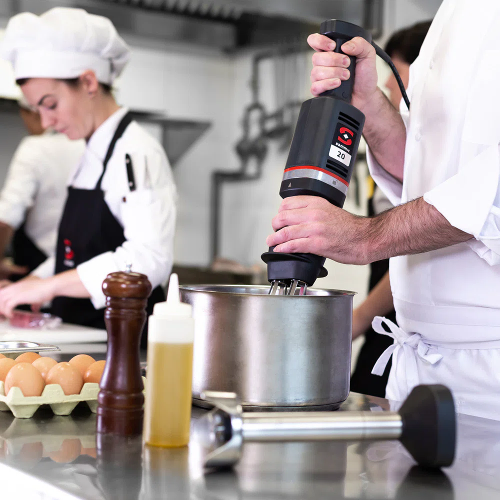 Kombimixer MB-21 från Sammic. Perfekt till att göra de mest subtila och delikata blandningarna: luftig konsistens, lena puréer m.m. Bladet och dess olika hastigheter gör att den klarar av de mest krävande blandningarna till de mer delikata och luftiga emulsionerna. Den arbetar snabbt, bekvämt och utan att man behöver några extra verktyg.