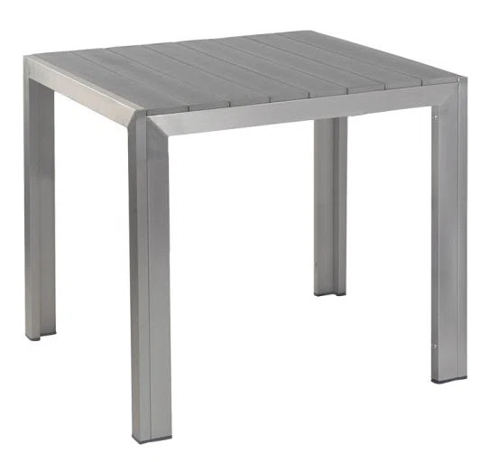 Komplett terrassbord i aluminium och polywood i grått look. Mått på bordet är 80x80x75 cm. Tillverkat i Polen