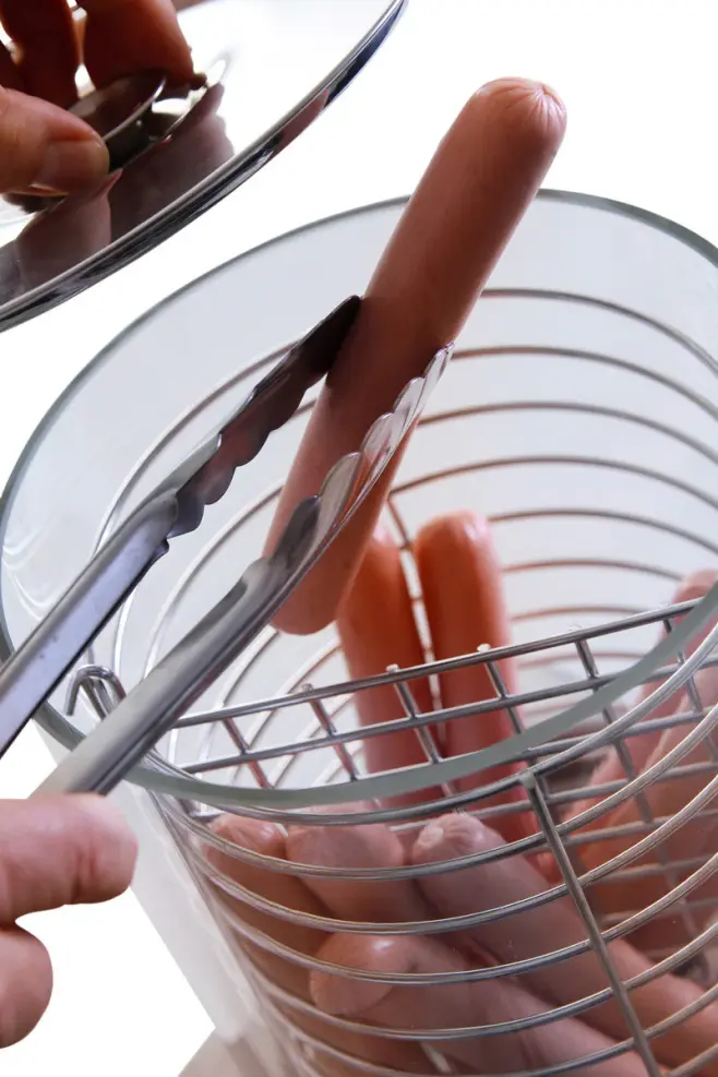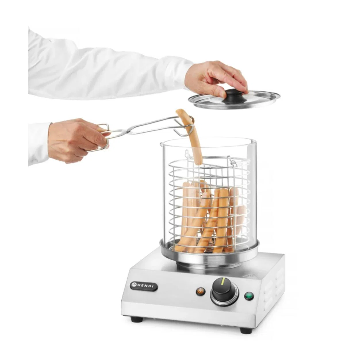 Korvvärmare i utförd i rostfritt stål, anodiserad aluminium och glas.