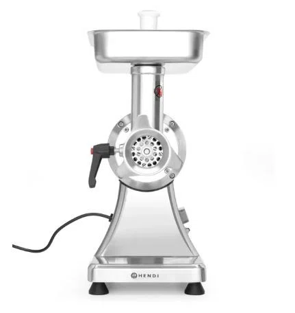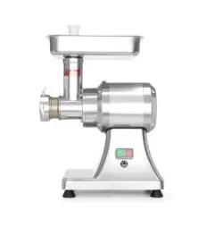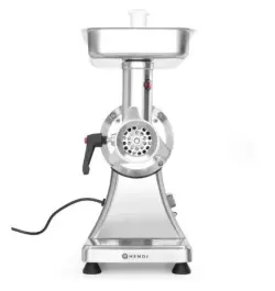 Köttkvarn till restaurang modell Kitchen Line 12 tillverkad i rostfritt stål och aluminium. Köttkvarnen producerar: 1,7 kg/min. Måtten på köttkvarnen är: 432x261x484 mm. Enkel att montera och att rengöra. Med denna köttkvarn ingår fyllningsrör och två Ø70 mm malningsskivor med hål Ø 6 och 8 mm.