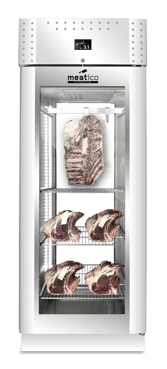 MEAT är det idealiska verktyget för dig som ägna sig åt köttmörning eller dry-aging på ett säkert och professionellt sätt. I dag beslutar sig allt fler restauranger och slaktare för att direkt följa torkningen och mörningen av sina köttstycken för att kunna erbjuda sina kunder en unik och högkvalitativ produkt. Meatico skapar en säker, skyddad och kontrollerad miljö för köttmorning tack vare sin avancerade teknik och långa erfarenhet av professionell kylning. Elegant design och omsorg om detaljer gör dessa produkter särskilt lämpliga för att visas upp, så att kunderna kan följa processen för mörningen steg för steg.