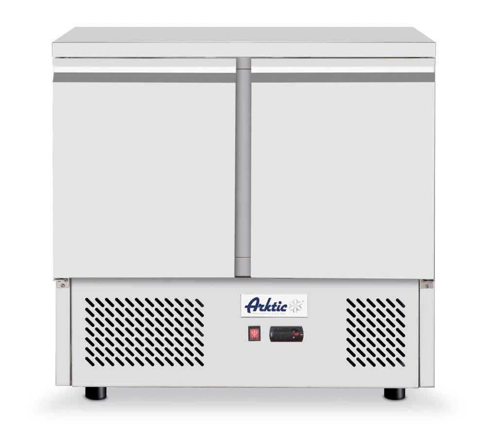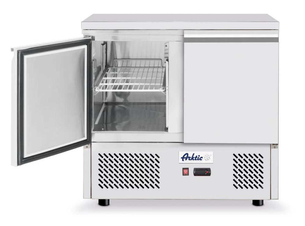 Inner and outer housing are made of high-quality stainless steel. Doors fitted with comfortable handles. Forced air cooling with auto-defrost, compressor placed underneath the chamber. 35 mm thick polyurethane foam insulation. With adjustable shelving, fits containers up to GN 1/1. Digital display and electronic thermostat. With 4 adjustable plastic feet. Auto-defrost with condensation evaporator. Climate class: SN-T. Coolant: R600a.