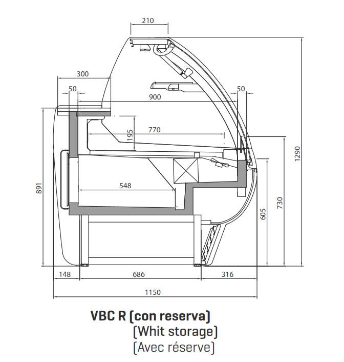 I dess breda sortiment kan du hitta modeller med böjda eller raka frontglas, alla med frontglasstruktur. Du kan också införliva vinklar och neutrala moduler utan kylning. Det finns ett brett utbud av alternativ och tillbehör. Dess utställningsyta på 770 mm och dess mellanhylla hjälper till att exponera produkten och framhäva dess kvalitet.