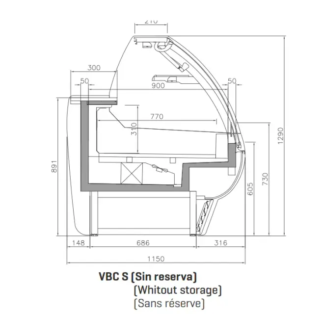 I dess breda sortiment kan du hitta modeller med böjda eller raka frontglas, alla med frontglasstruktur. Du kan också införliva vinklar och neutrala moduler utan kylning. Det finns ett brett utbud av alternativ och tillbehör. Dess utställningsyta på 770 mm och dess mellanhylla hjälper till att exponera produkten och framhäva dess kvalitet.
