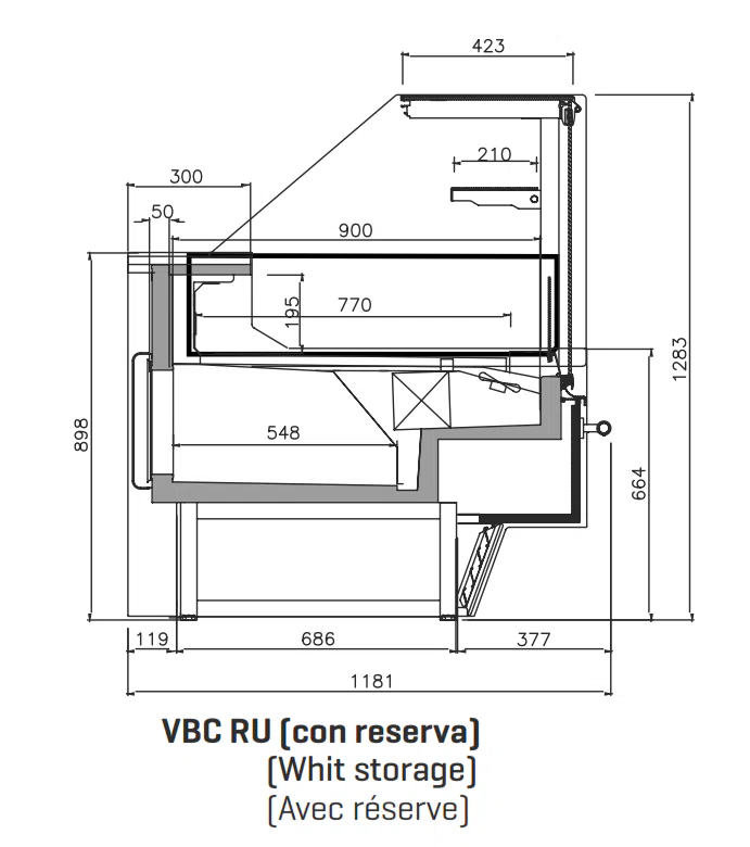 Moduler med kylförvaring undertil har en dörr med en öppning på 425×255 mm.